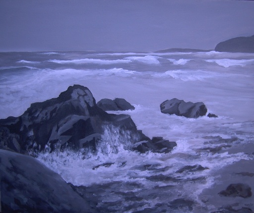 Dit leverde prachtige bijna zwart-wit beelden op aan de kust bij Clifden. Deze sfeer heb ik in acryl weergegeven in dit zwart-wit doek van 60x80 cm.